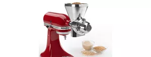 This all-metal attachment grinds wheat, oats, corn, rice, and other low-moisture, low-oil grains. Using freshly milled grains brings a hearty taste and texture to your baked goods. When you bake with home ground flour you will get all of the good you could possible get from a grain. Choose from 'cracked' to extra-fine consistency. Includes a cleaning brush.